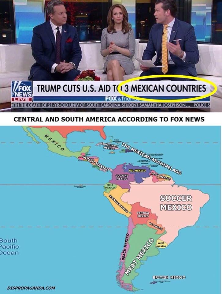 The thing is, Americans are easily manipulated, and Americans don’t care. That Fox New piece about the 3 Mexican Countries? That’s painfully accurate. Americans are exactly like this. It’s unimaginable to Americans that Mexico and America could be in cahoots. It’s unimaginable that anything south of the boarder isn’t Mexico.